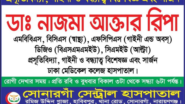 Sonargaon Central hospital is a Hospital That ensures the best healthcare service comprises of professional service excellence with outstanding personal service. Equipped with the most modern equipment and machinery to provide the best services.
