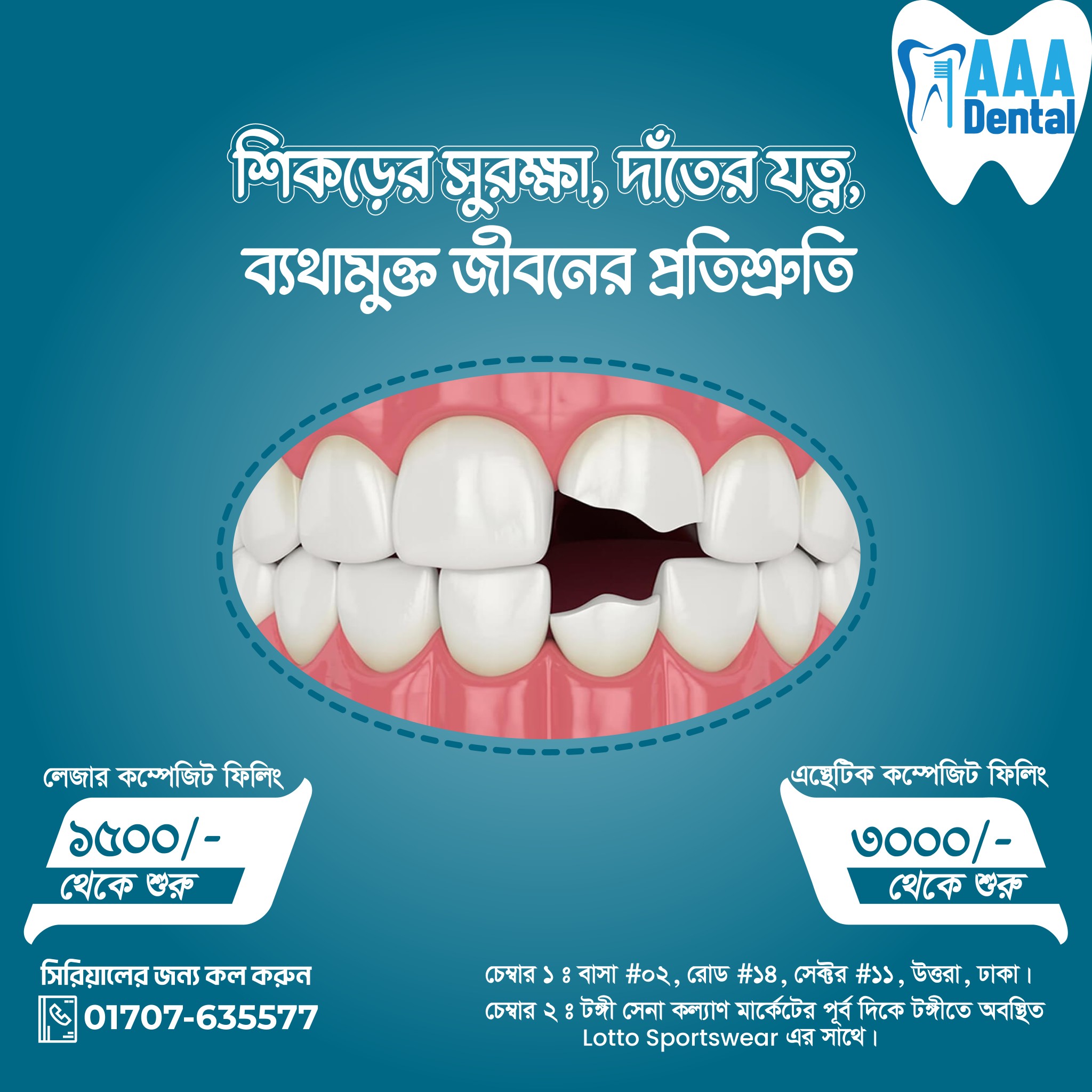Triple A Dental "সুস্থ দাঁত, সুখী জীবন" Dentist 01707-635577 01707-*** show Savar Subdistrict, Dhaka District, Dhaka Division, Bangladesh Save Submit Review Share Share This Post: facebook twitter linkedin google pinterest Description আপনার এবং আপনার পরিবারের সুস্থ দাঁতের জন্য আমরা সবসময় পাশে আছি Maps Map Street View Get Directions Photos Video Add Review & Rate Reply comment Cancel replyName Email Save my name, email, and website in this browser for the next time I comment. Δ Be the first to review “Triple A Dental” Cancel replyName Email Save my name, email, and website in this browser for the next time I comment. Review Drop images to upload or Gallery Images Δ Close Business Info Get Directions Savar Subdistrict, Dhaka District, Dhaka Division, Bangladesh 01707-635577 01707-*** show Aaadental7@gmail.com tripleadental.com Follow Us Contact Business preozone Aaadental7@gmail.com Send Message Nearby listings Find more Dentist near Triple A Dental Browse Nearby Admission Admission Bookstores Business Butcher Shops Couching Center Diagnostic Centers Doctors Doctors Educational Experts Factories Factories Furniture Gift Shops Health Hospitals Information Jobs Laptops PC & Accessories Mobile Phones & Accessories Painters Pharmaceuticals Printing Sale Saloon School Services Software Development Sports Stores Telecoms Training Center Training Centers Travel & Tour Travel Agents University Wholesale Show all Statistic 9 Views October 4, 2025 Claim your free business page to have your changes published immediately. Claim this business Claim This Business
