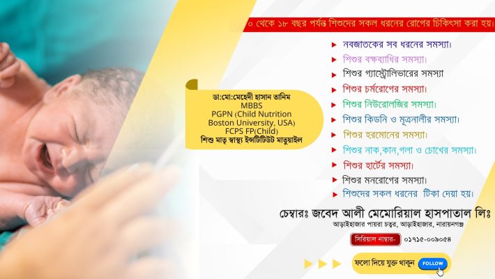 শিশুদের যেকোন সমস্যায় আমি আছি আপনাদের পাশে। অভিজ্ঞ শিশু ডাক্তারের নিয়মিত চেকআপে থাকুন নিশ্চিন্ত। আপনি কি শিশুর জন্য অভিজ্ঞ ডাক্তার খুজছেন?