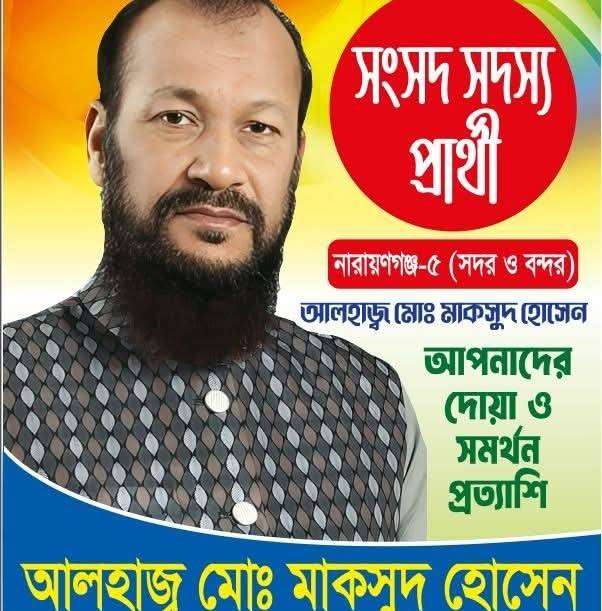 নারায়ণগঞ্জ-৫ আসনের স্বতন্ত্র এমপি প্রার্থী আলহাজ্ব মোঃ মাকসুদ হোসেন, নারায়ণগঞ্জ -৫ আসনের সর্বস্তরের সবার কাছে দোয়া কামনা করেন, তিনি বলেন আমার জন্য সবাই দোয়া করবেন আমি নির্বাচিত হয়ে, আপনাদের সেবক হয়ে উন্নয়ন মুলক কাজ করতে চাই।