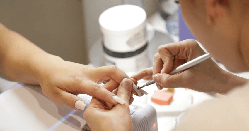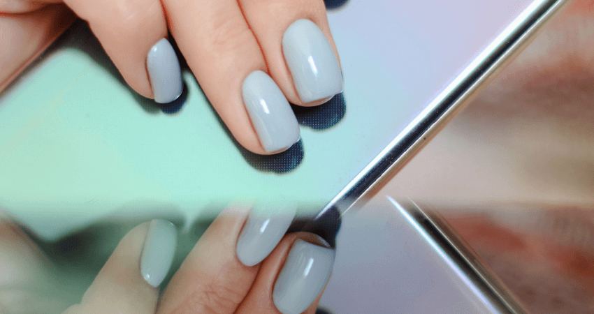 This is probably what you’re getting when you book a gel mani. It’s basically a hybrid of gel and nail polish that’s cured and hardened with a UV light. The word Shellac is actually just the trademark name of CND, the first company to invent and register this type of polish. It’s less hard than gel and soaks off with acetone.