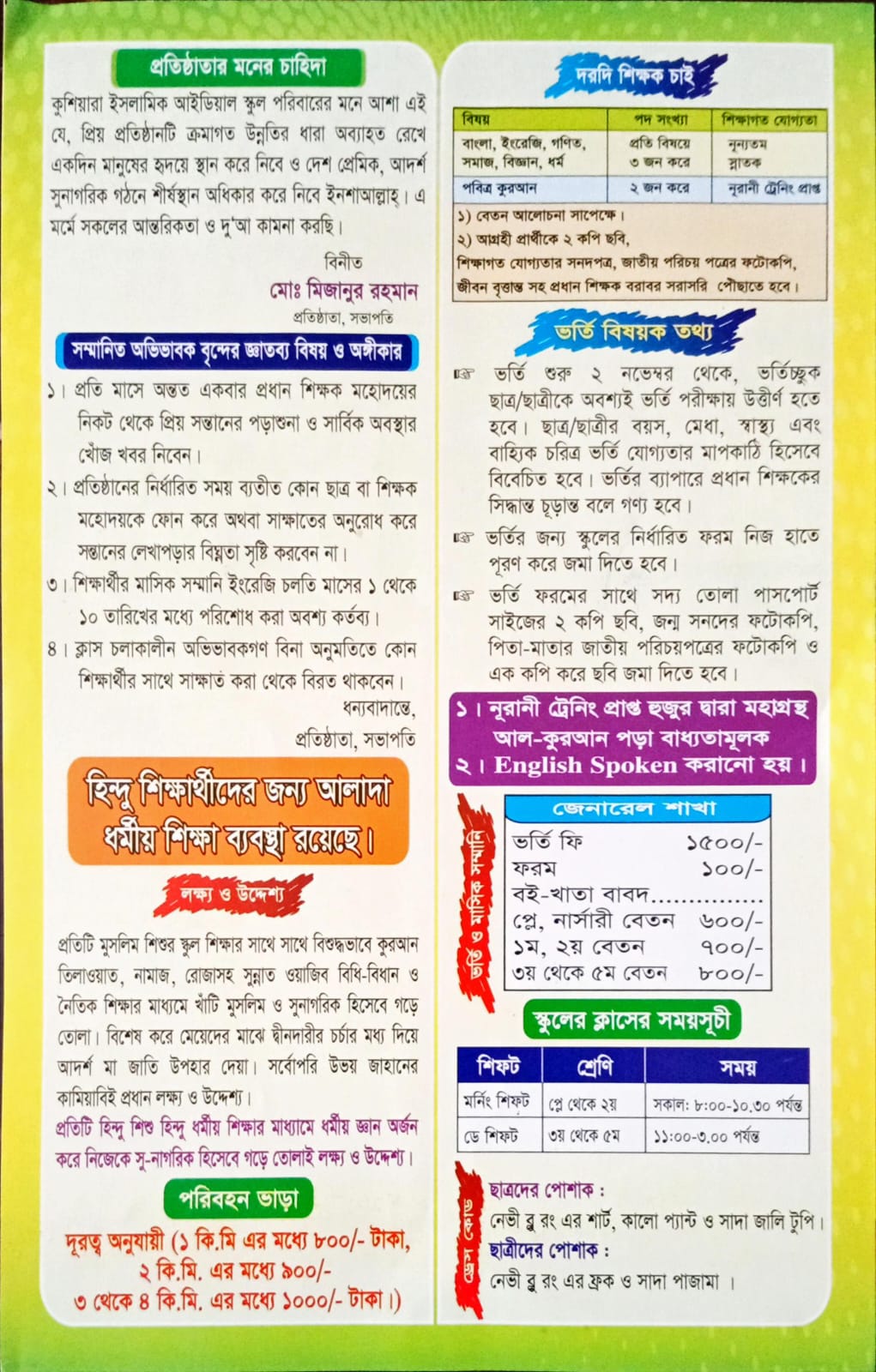ADMISSION OPEN: 2026 Session Kushiara Educational Complex, Narayanganj Kushiara Islamic Ideal School “Read in the name of your Lord, who created you.” Admission for Pre-Nursery to Class 5 starts from November 1st. Why Choose Us? Integrated Curriculum...